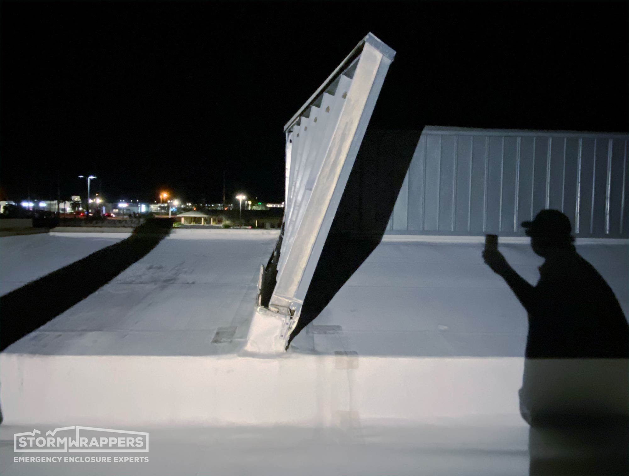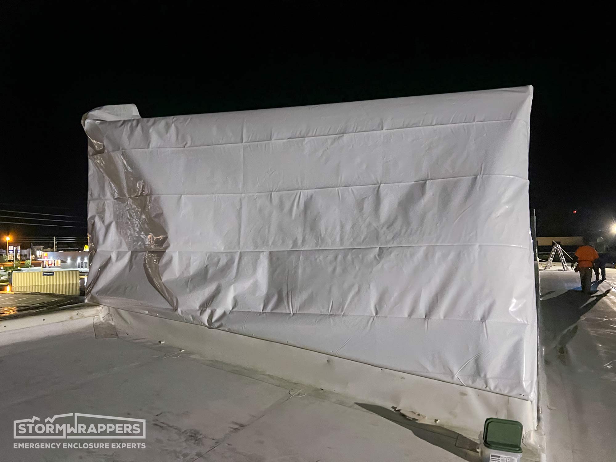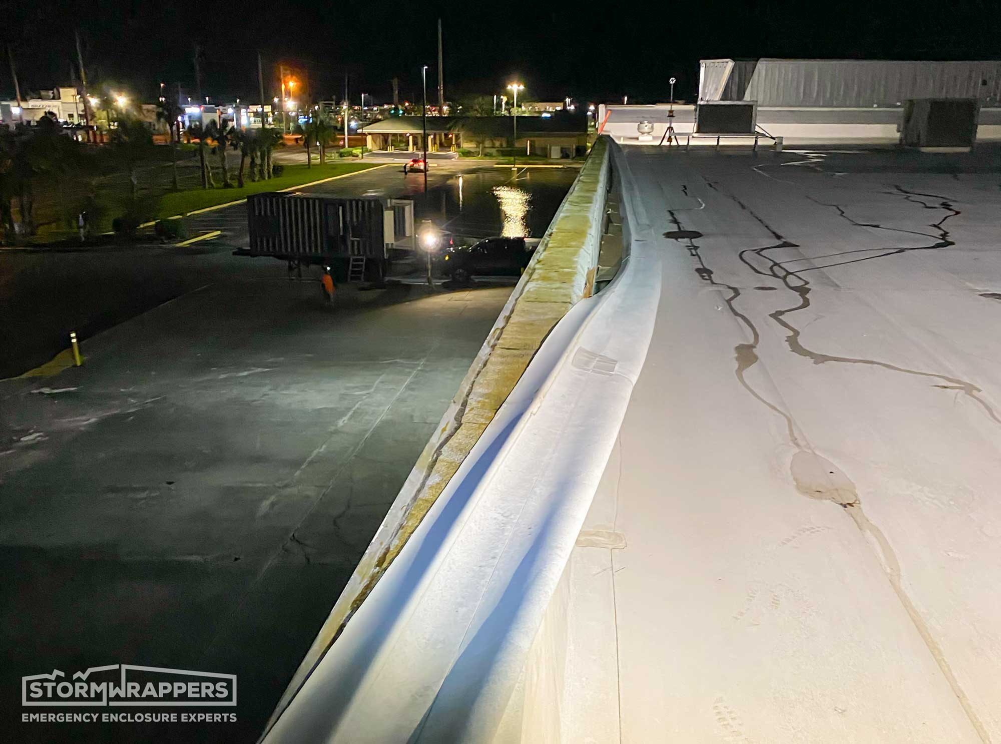 Hurricane Ian caused damage to this property and shrink-wrap was applied to the structure.