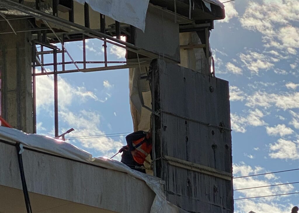 StormWrappers was requested to work with the GC throughout the reconstruction phase to ensure the building remained weatherproofed. This required StormWrappers to cut up the shrink-wrap and then reseal the opening at the end of the day, essentially providing a large temporary working window (10x40ft).