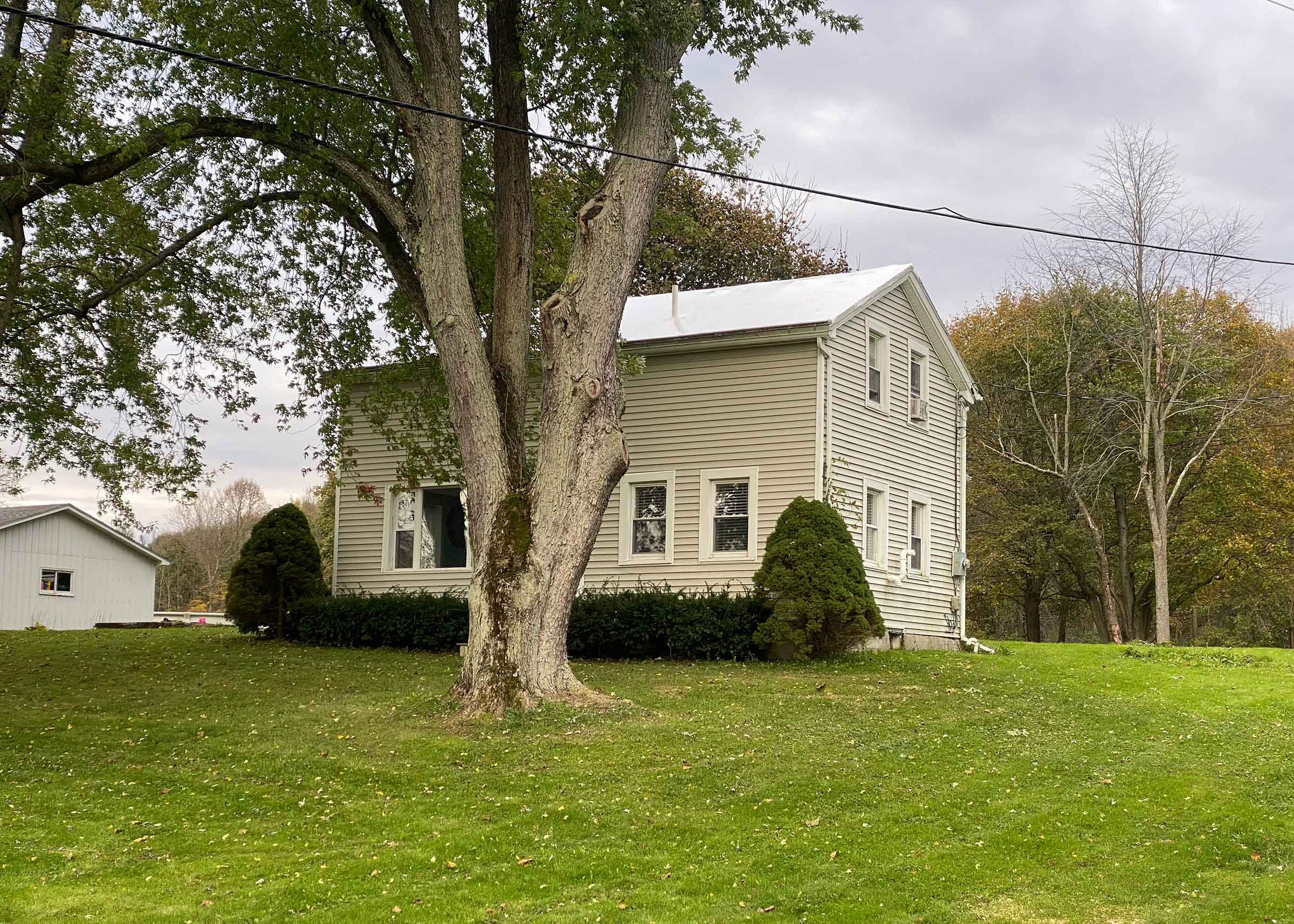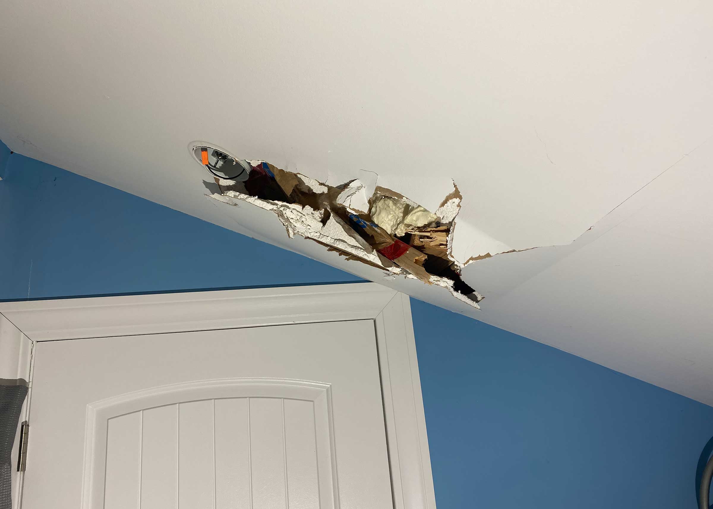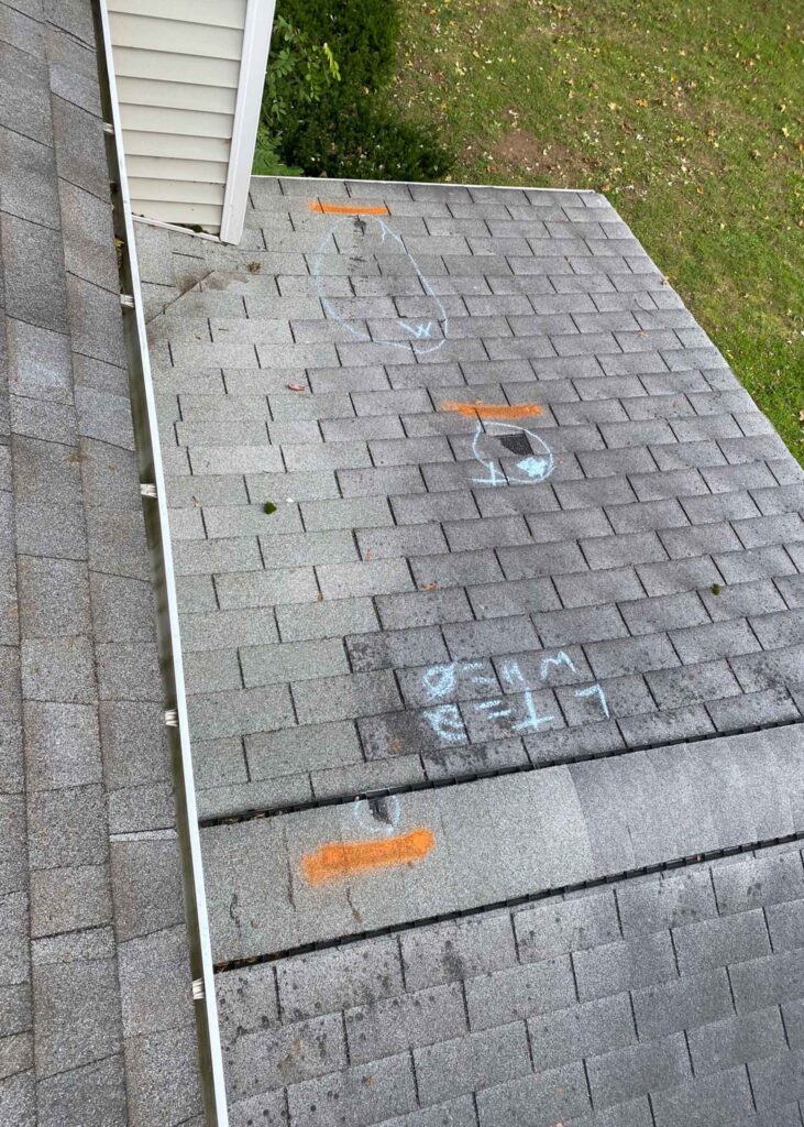 Straight line winds caused a tree to crash on the roof of a home in Newark, NY. The tree broke through the roof sheathing. StormWrappers removed the tree debris and shrink-wrapped the roof.