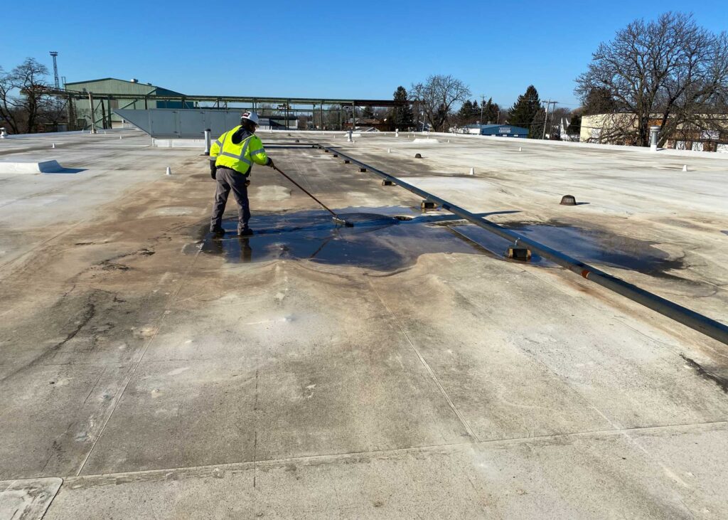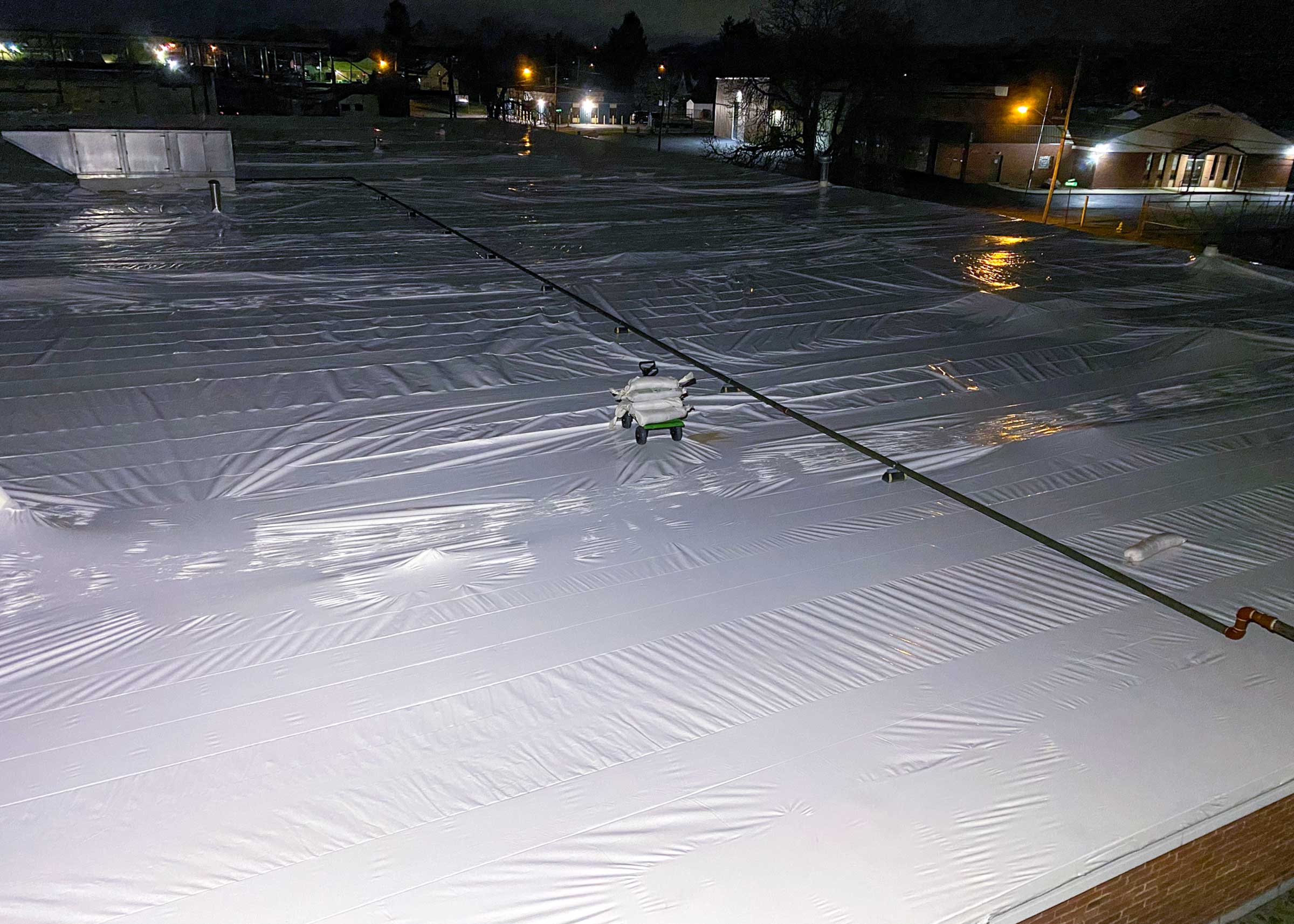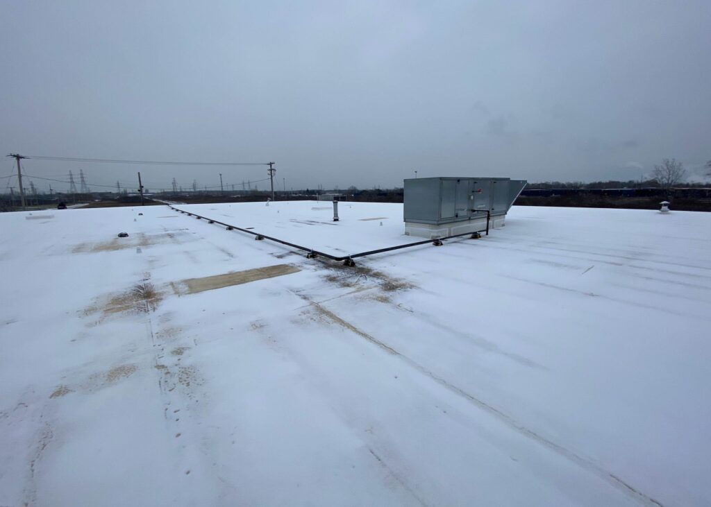A hailstorm in Niagara, NY damaged the entire roof, eventually resulting in water leaking into a high-voltage electrical cabinet, creating a serious safety concern.