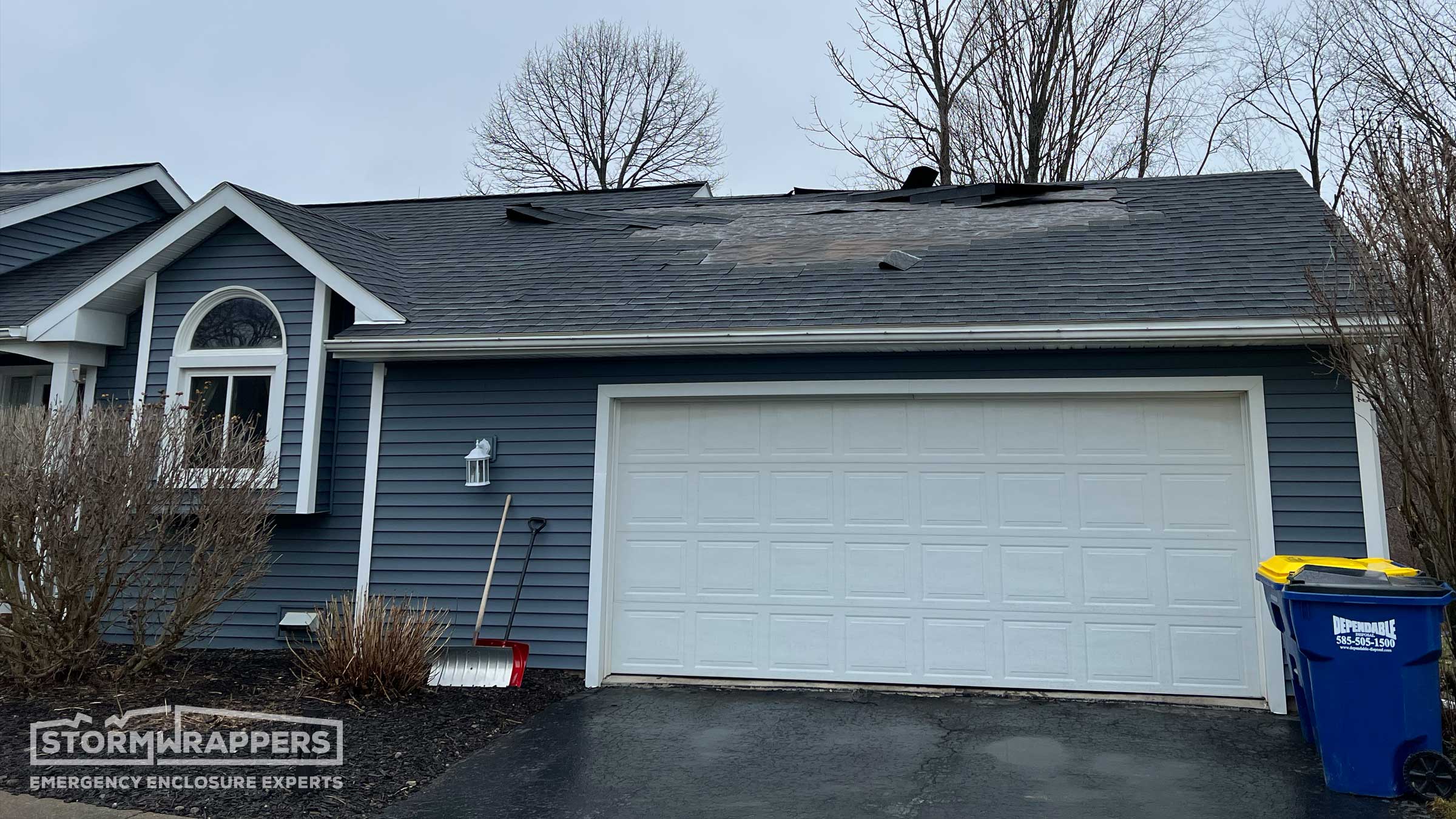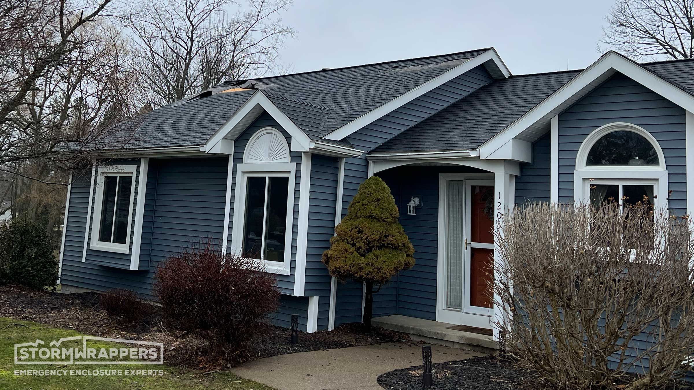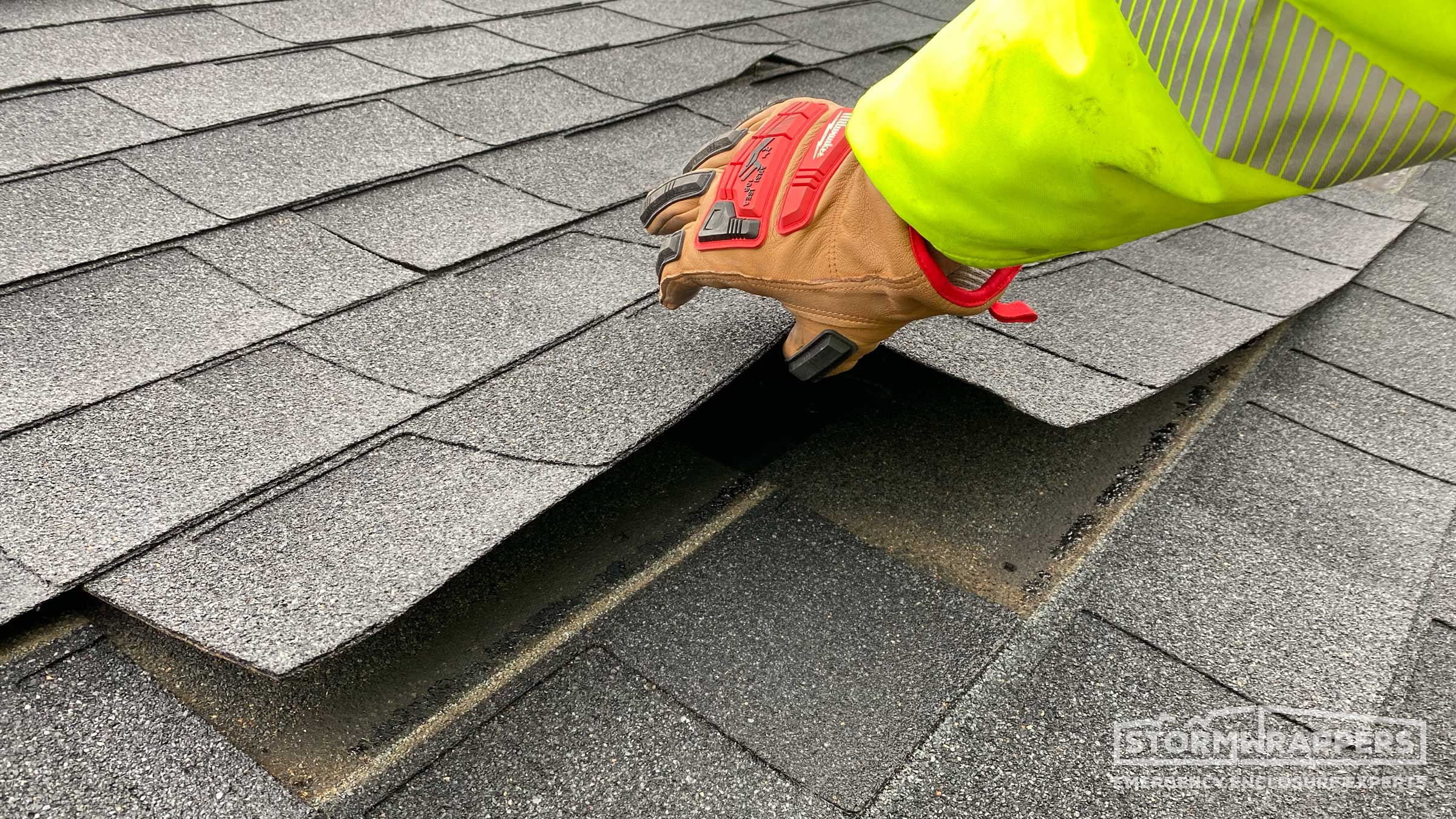 Substantial roof damaged was caused by straight line winds ripping off shingles and the underlayment. StormWrap was required for almost the entire home to dry-in the structure ands mitigate further roof and water damage to the home.